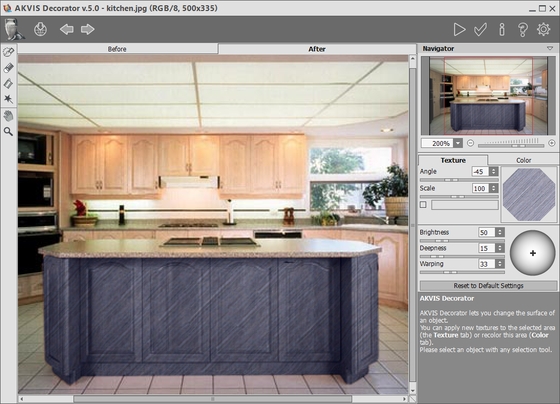 AKVIS Decorator will help you to choose a suitable interior design for your apartment. You can experiment with the furniture upholstery, with the color of carpets and walls, change the material of the furniture. The changes will take place only on a photo, at the same time the program will also require no more than a digital image.
